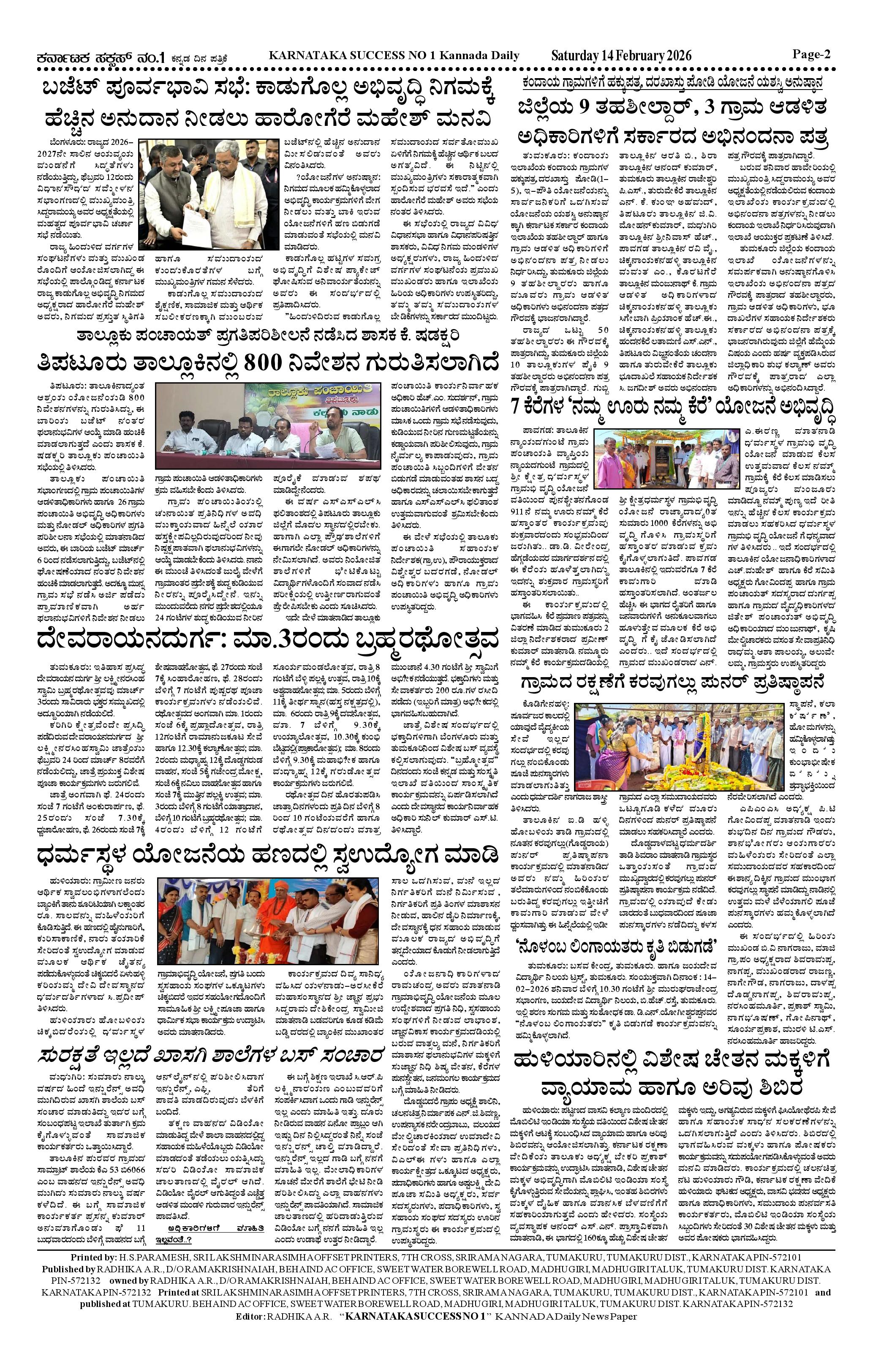14 FEB 2026 KS Page: 2 February 14, 2026 << First << 2 >> Last >> Page 1Page 2 × 14 FEB 2026 KS 14-02-2026 KS.p6-page-00114-02-2026 KS.p6-page-002 << First << 2 >> Last >> 14-02-2026 KS.p6-page-00114-02-2026 KS.p6-page-002 14-02-2026 KS.p6-page-002